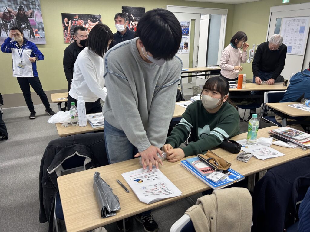 1月31日(土)・2月1日(日)/7日(土)/8日(日)の計4日間、障害者スポーツ文化センターラポール上大岡(以下、ラポール上大岡)で、障害に関する基礎知識(座学)や障害のある方との交流、車いすバスケットボールやボッチャなどの種目体験(実技)、ペットボトルを使った心肺蘇生練習やコンビニ袋を活用した応急処置等々、充実した内容の講義が行われました。全てのカリキュラムを履修した方は29名。この方々は、主な活動地を横浜市としてJPSAに登録され、基本的に横浜市パラスポーツ指導者協議会(愛称:バセル)のメンバーとなるので、横浜市のパラスポーツ指導員が29名増えることとなります。