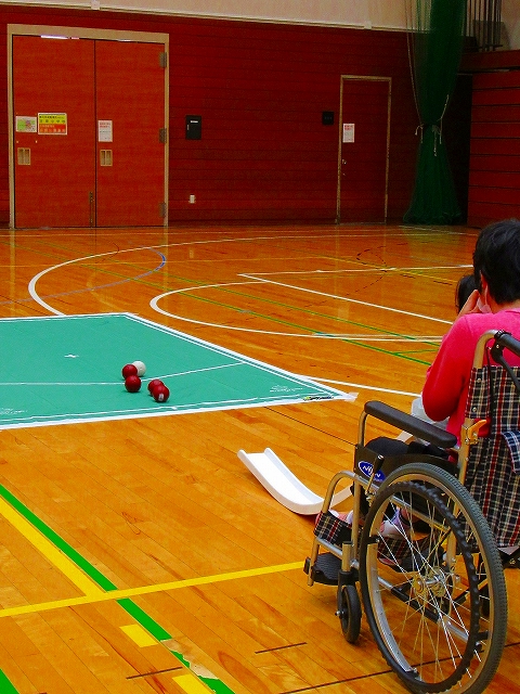近隣の地域活動ホームの利用者の方を中心にご参加いただき、パラリンピックでも使用されている「ランプ」というスロープでボッチャの投球をしたり、初めて触れる種目を楽しむ姿がみられました。