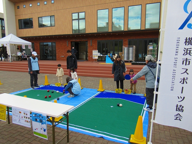 また、地域ケアプラザによる血管年齢・握力の測定、ハマボールによるミニボウリング体験も同時に開催し、幅広い世代の方にご参加いただきました。