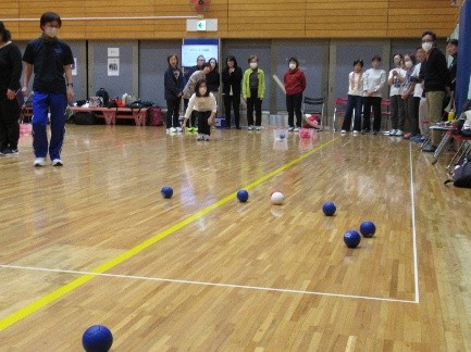 講座は最初の導入でボッチャとモルックについて紹介し、前半ボッチャ後半モルックの実技を中心としたルールや遊び方について学びました。