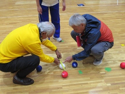 参加者の皆さんは、最初は表情が硬かったものの、試合形式の実技や審判の体験を重ねるにつれて笑顔や会話が弾むようになり、ボッチャとモルックの魅力に引き込まれていた様子でした。