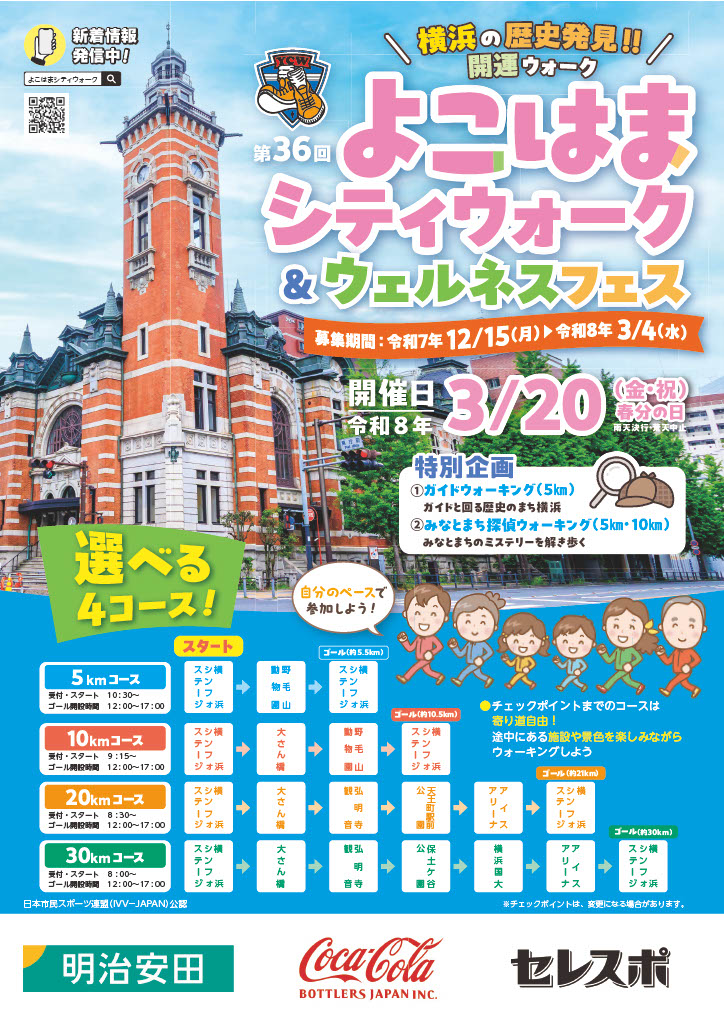 毎年3月に開催しているウォーキングイベント「よこはまシティウォーク」が、3月20日(金・祝)に開催されます!