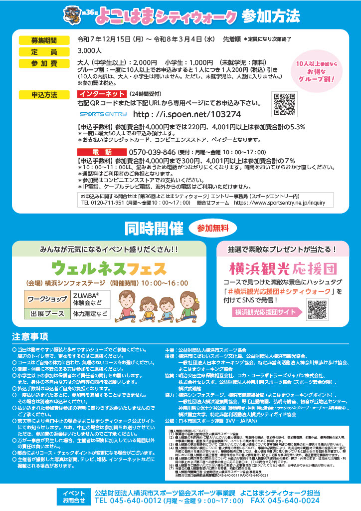 「第36回よこはまシティウォーク&ウェルネスフェス」参加者募集!!