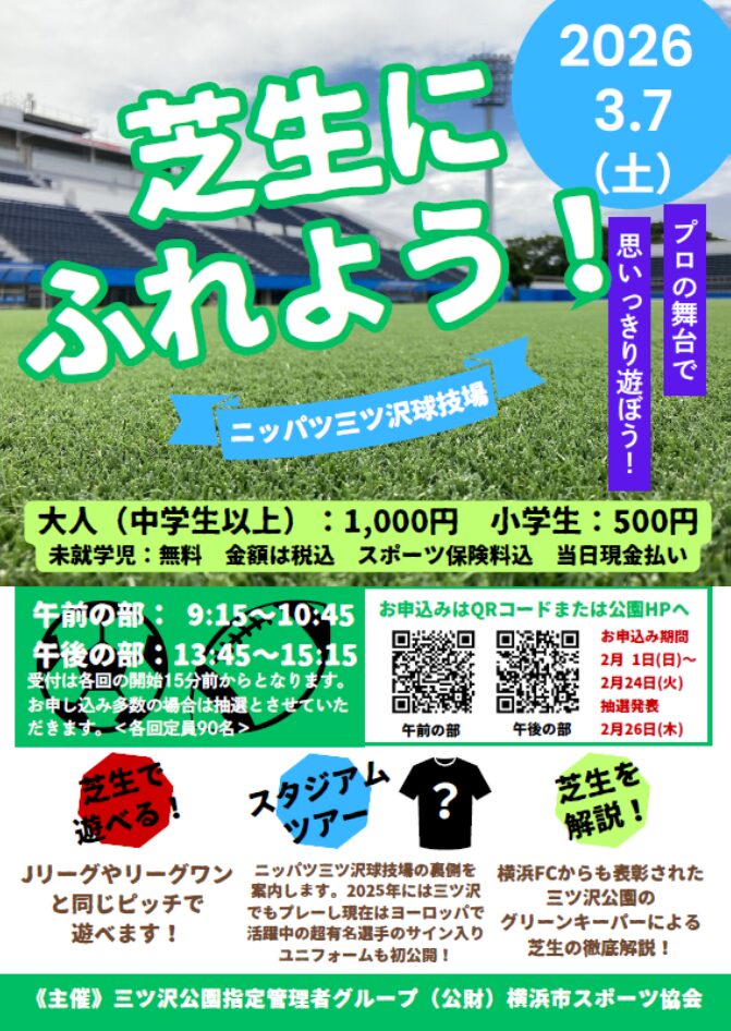 2026年3月7日(土)『芝生にふれよう in ニッパツ三ツ沢球技場』開催!