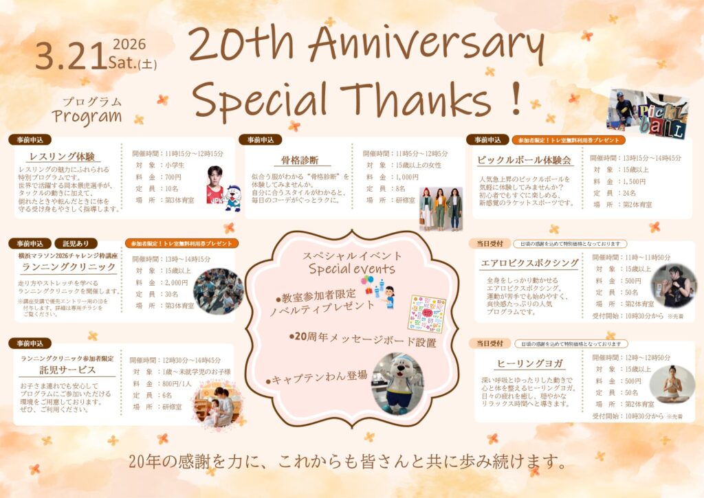 皆さまに支えられ、都筑スポーツセンターは3月20日に20周年を迎えることができます。